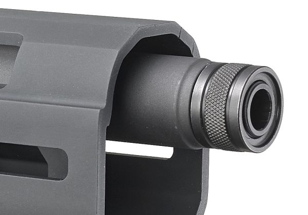 - Threaded barrel with included thread protector allows for use of standard muzzle accessories